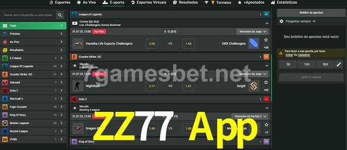 O ZZ77 App oferece uma grande seleção de opções de apostas em e-sports com probabilidades competitivas